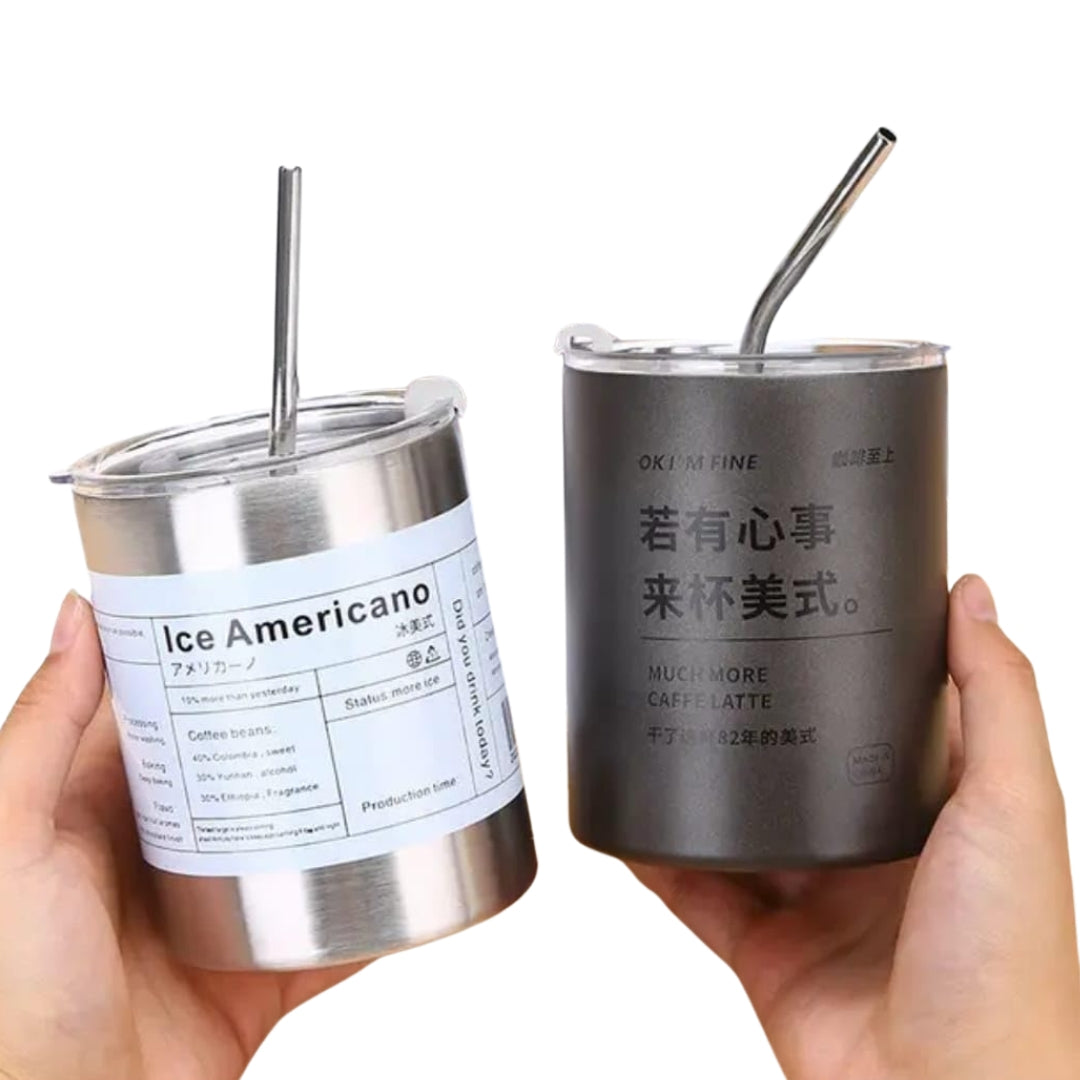 Liying 375ml Stainless Steel Coffee Tumbler with Straw and Lid Sealed Carry on Glass Iced Coffee Cup Leak Proof Tumbler Cup Reusable Smoothie Mugs for Cold and Hot Drinks Coffee Tea Silver Drinkware