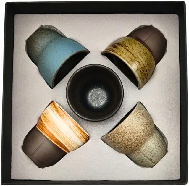 - DESIGN FEATURES: Set of 5 handcrafted ceramic cups with artistic gradient colours and shiny brown finish, presented in an elegant gift box