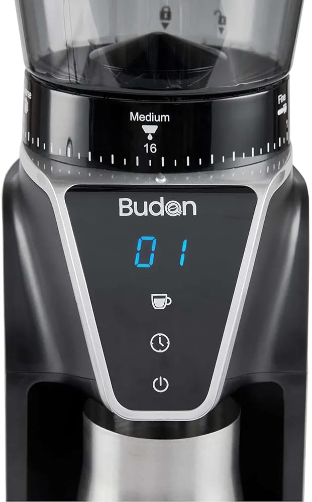 - Simple Controls: User-friendly control panel with on/off switch and grind selector dial.