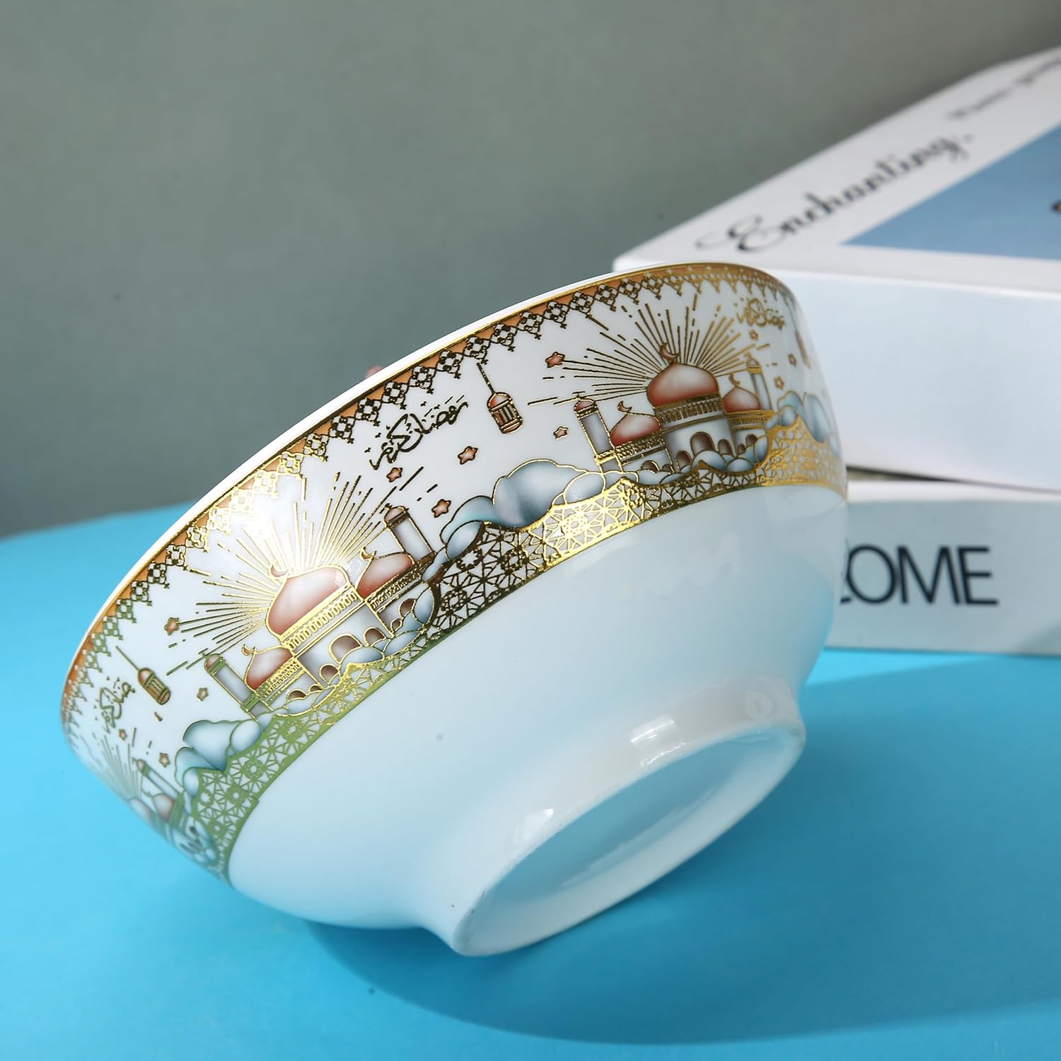 - Special Design and Unique Texture: The unique Ramadan design texture and gold color coarte of decoration make this bowl more special, a brilliant option for ifthar table using, even it makes your dinner looks more delicious. It's also a great gift for holidays, housewarmings and special occasions.