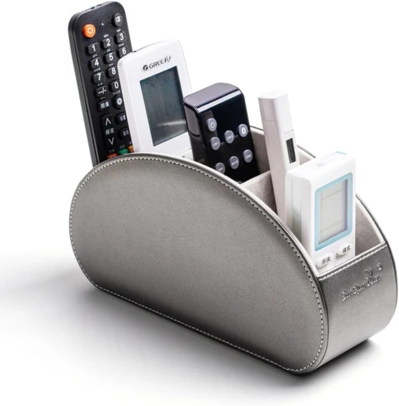 Bring order to your living space with this sleek and functional remote control holder from Liying. Crafted from premium PU leather, this desktop organiser offers a stylish and practical solution for storing up to five remote controls. Its compact design with five compartments ensures your remotes are neatly organised and easily accessible. The holder's sturdy construction and elegant Grey colour make it a perfect addition to any modern home decor. Bid farewell to misplaced remotes and embrace a clutter-free environment with this versatile remote caddy. Keep your TV, DVD, Blu-Ray, media player, and heater controllers within reach and enjoy a seamless entertainment experience. Dimensions: 20cm x 12cm x 8cm.