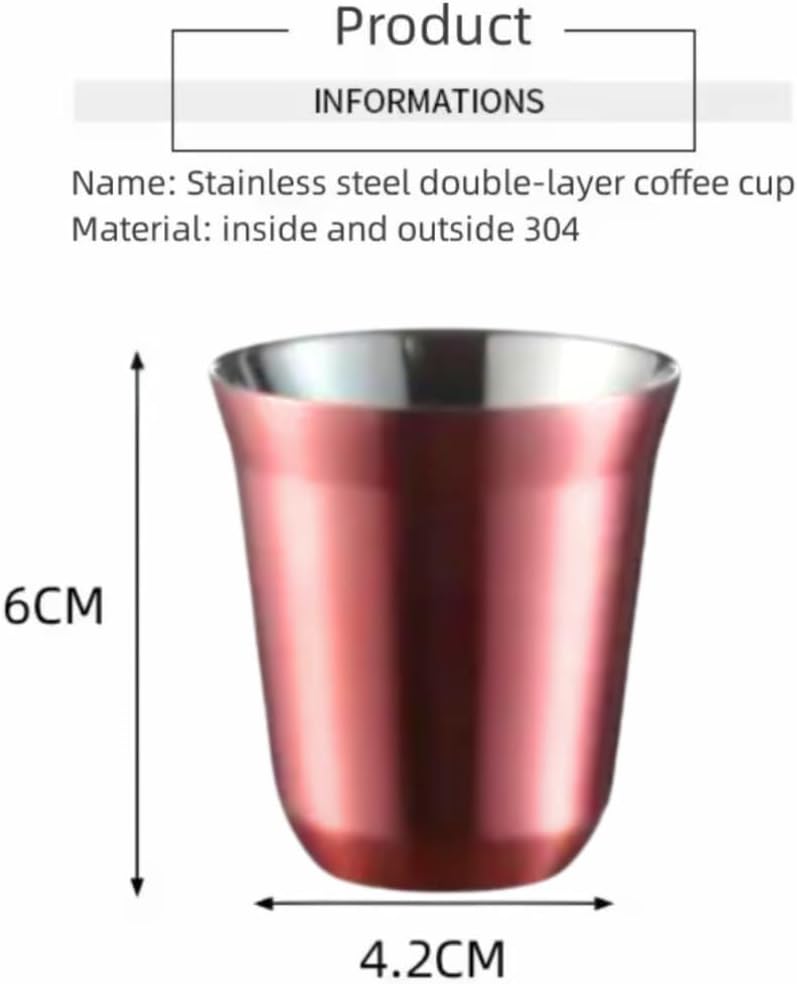 Experience the perfect blend of style and functionality with this stainless steel double-layer coffee cup. Crafted from premium 304 stainless steel white coated , both inside and out, this cup is not only durable but also retains the temperature of your beverage for an extended period. With a sleek and modern design, it adds a touch of sophistication to your coffee or tea routine. Measuring 6cm in height and 4.2cm in diameter, this compact cup is ideal for savouring your favourite hot or cold drinks on the go. Its double-walled construction creates an insulating layer, ensuring your hands remain comfortable while enjoying your beverage. Effortlessly stylish and practical, this stainless steel espresso cup is a must-have for coffee connoisseurs and busy professionals alike. Embrace the perfect combination of form and function with every sip.