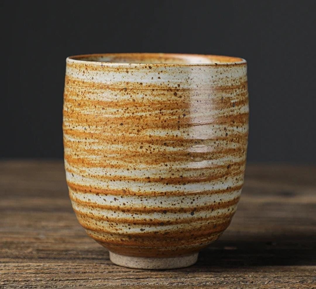 Elevate your coffee or tea experience with this handcrafted vintage ceramic cup. Crafted with meticulous attention to detail, this 175ml cup showcases a striking Dark Brown striped design, reminiscent of the ocean's waves. Each piece is a unique work of art, featuring subtle variations and a rustic, speckled finish that adds to its charm. Whether you're indulging in a rich espresso or savouring a soothing herbal tea, this cup promises to make every sip a delightful moment. Its sturdy construction ensures durability, while the ergonomic design provides a comfortable grip. Embrace the artistry and craftsmanship of this exceptional ceramic cup, and elevate your daily beverage ritual to new heights.
