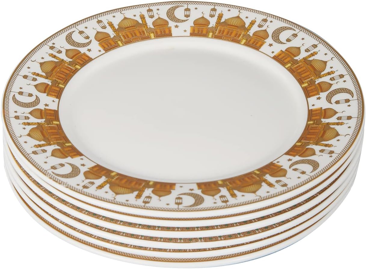 Meet Your Needs: Totally 6Pcs of Ramadan ceramic plates are included in this package, enough to meet your daily using needs, their beautiful Ramadan design coated plates can also decorate your kitchen and home Applicable occasions: Our Dessert Plates contains the typical and classic Festival elements, can be applied for Ifthar, Eid, wedding, festival and themed party, they will be adorable ornaments to add beauty to your parties Display your dessert: These Plates serving tableware can be practical tools for displaying your dessert, cake, cupcake, candy, pastry, cookie, fruit pie and so on, they can help to decorate your food to be more appetizing Safe and resistant to use: Our Ceramic Ramadan Dessert Plates are made of Ceramic material, safe and non-toxic to food, durable and firm to use, easy to clean, with good intensity, can serve you for a long time Right Size with Spice Up Place: : The Ceramic Ramadan Dessert Plate H-15 , W-15, L-15 so you can organize and place different kinds of items, cakes, fruits, cookies, sweets more